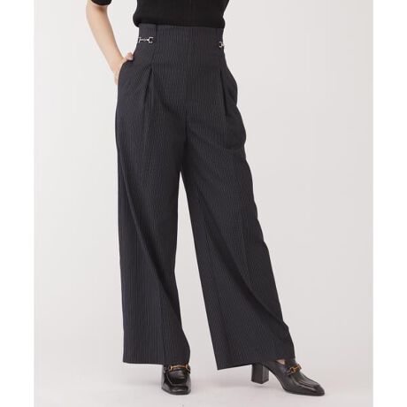 サイドにビットパーツを付けた上品なワイドパンツ。センタープレスを入れたワイドシルエットでキレイめな印象に見せてくれます。普段使いはもちろん、オフィスシーンにも着ていただけます。ポケット付き、エクリュカラーのみ裏地付きです。※撮影時照明の関係により、色味が違って見える場合がございます。またパソコン・スマートフォンなどの環境により、若干製品と画像のカラーが異なる場合もございます。予めご了承ください。商品の色味は、商品単品画像をご参照下さい。※商品画像はサンプルのため、色味やサイズ等の仕様に変更がある場合がございますので、予めご了承ください。