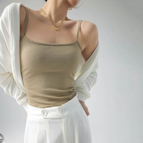 春夏に向けて前後2wayが嬉しい♪下着が見えないワイドショルダーリブタンクトップ