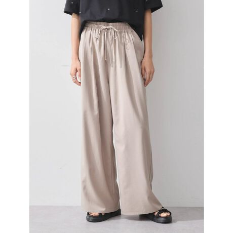 上品な落ち感ととろみのある素材で仕立てたワイドパンツ。