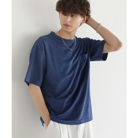 通気性が良く軽やかな着心地で、暑い夏でも快適に着用できる楊柳ジャガード半袖Tシャツ。凹凸感のある織り方で、柄を立体的に出すことでプレーンなTシャツとは一味違うコーデが決まります。程よくゆったりとしたサイズ感でさらっと着こなせ、旬のスタイルが決まる一着。前身頃の胸ポケットもさり気ないアクセントに。カラーはベーシックなブラック、見た目にも涼し気なアイスグレー、着こなしのアクセントになるネイビーの3色展開。一枚あると夏の着こなしに新鮮さをプラスできる汎用性の高いアイテムです。