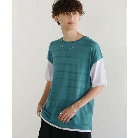 TRランダムボーダージャガード半袖フェイクレイヤードベストTシャツ