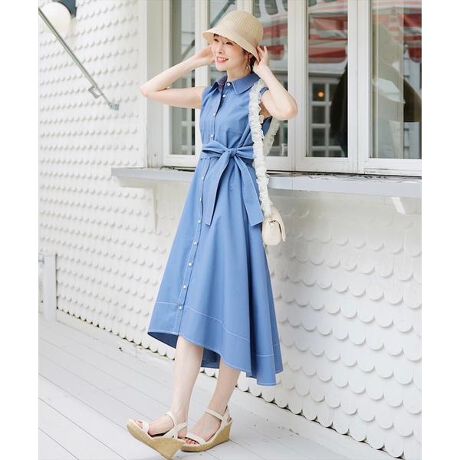 【フィッシュテールが爽やかでエアリーな夏の大人フェミニンスタイルを完成させるノースリーブシャツワンピース】【Point】・フィッシュテールの動きのある裾の揺れ感が涼しげに装う、ノースリーブシャツワンピース。・ウエストのリボンをつけると女性らしいフィット&フレアラインを楽しめます。リボンを外していただくと、暑い日にラフに着られるエフォートレスなゆったりシルエットでも着用いただけます。・ゴールドに縁取りされたボタンが、上品な印象に仕立ててくれます。ケア方法:ドライクリーニング透け感:なし裏地:あり伸縮性:なし光沢感:なし生地の厚さ:中肉