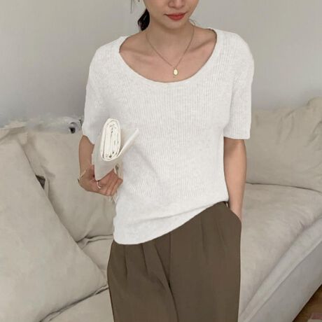 1枚でも重ね着にも着まわし上手な半袖リブニットトップス