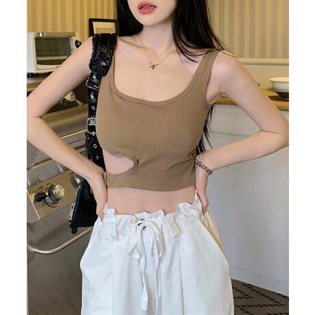 下着の紐を気にせず一枚で決まり、後ろも深めのUネックで、トレンドのバックシャンアイテムとも相性抜群