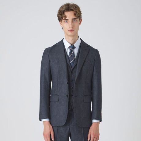 【一部店舗限定】DRAGOスカイフォールトップネイビーグレンチェックスリーピーススーツ