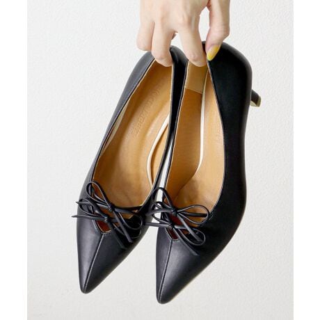 ダブルの華奢なリボンが目を惹く、Vカットパンプス!