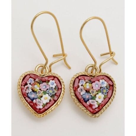 イタリア・フィレンツェの伝統技法「ガラスモザイク」で作られたミニサイズのフックピアス。1mmほどのベネチアンガラス(ムラーノガラス)をフレームにはめ込んで、お花などの模様を表現しています。昔ながらの職人の繊細な技が光ります。身に着けてちょっと嬉しくなるアイテムです。