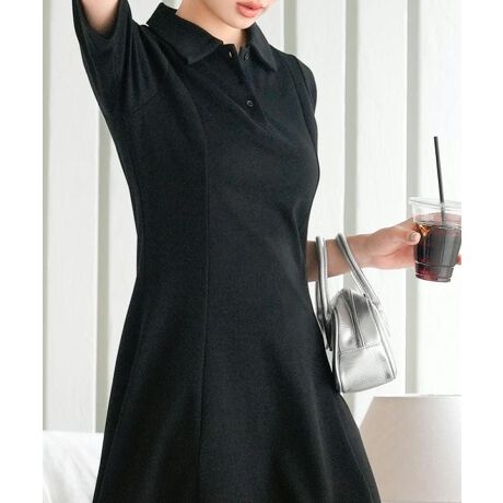 カジュアルな雰囲気の中に大人の上品さを兼ね備えたポロワンピース。ほど良くゆとりがあるサイズ感と着丈のバランスでエレガントな印象に。縦に入ったパネルラインとフレアシルエットで着やせ効果が期待できます。