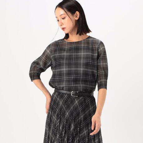 シアーなベースで透けるチェックにすることで、トラッドをモードに昇華します。