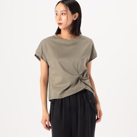 フレンチスリーブの袖口は花びらのように重ねた仕様でフェミニンさをプラスしています。