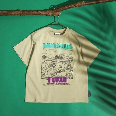 【福井県立恐竜博物館コラボ】\恐竜好きキッズのみなさん集合ー!/リニューアルした福井県立恐竜博物館とのコラボTシャツが今年も登場!かっこいい恐竜たちがデザインされたTシャツは、ベージュ、ブラック、ブルーの3色展開◎今年の夏Tはこれで決まり!きょうだいでお揃いもおすすめ!