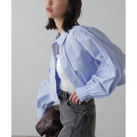 毎年好評のボリュームスリーブショート丈シャツを、今年はビッグポケットディテールにして、ユーティリティテイストに仕上げました。サイズ感はそのままに、トレンドのY2Kの着こなしも出来るよう、大き目のブラウンネルチェックに、今年もタイプライターの無地、オフとサックスカラーも揃えています。ゆるっとした着心地ながらも丈が短いので、スッキリとどんなボトムスとも合わせやすいです。今年は加工感のあるデニムパンツ合わせでボーイズライクな着こなしがおすすめ。ワンピースの羽織としても使いやすいです。※モデルの着用画像の場合、光の当たり具合により、実際の色味と異なって見えることがございます。色味は、商品単体の画像をご参照ください。