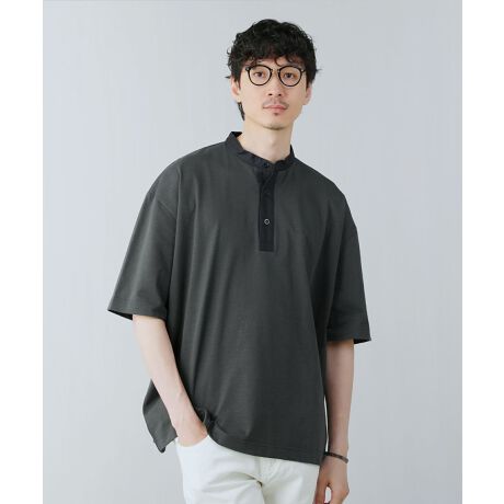 バンドカラーシャツによく似た襟デザインで、Tシャツでありながらもシャツのようなきちんと感も演出してくれるアイテムです。