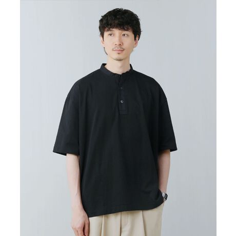 シンプルなスタンドカラーのヘンリーネックTシャツです。