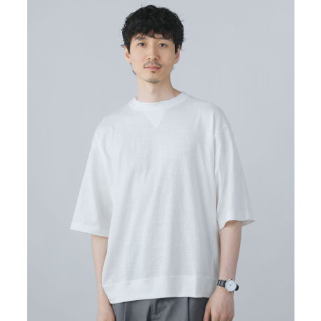日本製ラフィー天竺(5.5オンス)ガゼットクルーネック ハーフスリーブスウェットライクTシャツ