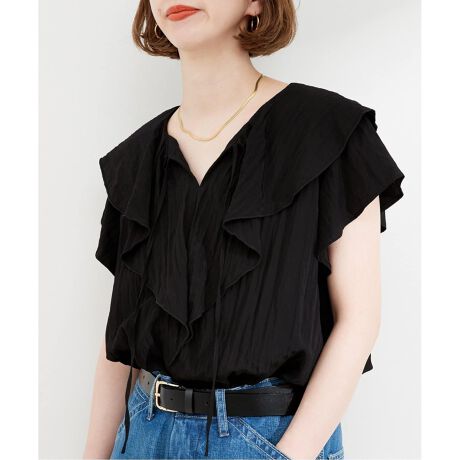 ラッフルカラーのフェミニンな甘めデザインですが、落ち着いたベーシックなカラー展開で大人カジュアルに着やすいデザインになります。