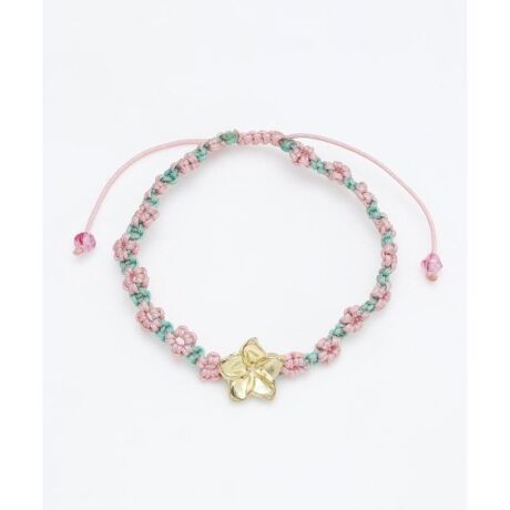 [型番:4IOZ4301-2024]プルメリアがレイのように連なるブレスレット。編み込み部分もプルメリアになっていて可愛らしくあなたの手元を彩るデザインブレスレットです。