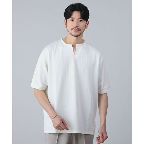 <ALLOWED TO UNFOLD>編み柄ジャガードスキッパー半袖Tシャツ