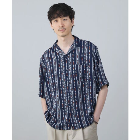 インパクトたっぷりなレトロ柄が目を引く半袖シャツです。