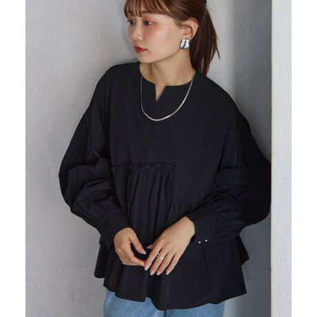 1枚で着映えするので、ボトムはシンプルにブラウスを主役にしたスタイルがオススメです。