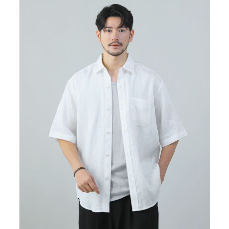<ALLOWED TO UNFOLD>ムジ麻100%レギュラー半袖ボタンシャツ