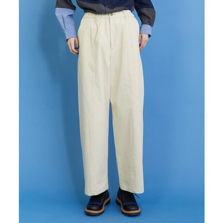 ゆったりめに設定されたヒップと太もも周りに、裾に向かってほのかにテーパードを効かせたワイドストレートのシルエット。