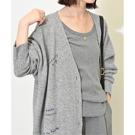 ・遊び心のあるキャッチーなメッセージを刺しゅうしたカーディガン
