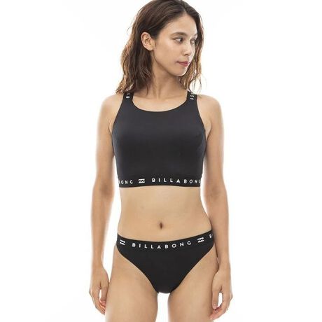 デコルテから胸元をおしゃれにカバーするハイネックタイプのビキニ。アンダーバストやバック、ウエストに施されたロゴ入りのジャガードバンドがポイントです。トップにはパットホールが内蔵されているので、スタイルに合わせてお好みのパットを入れることができます。股上はミディアム、ヒップはしっかりめにカバーするLOWRIDER FITを採用。