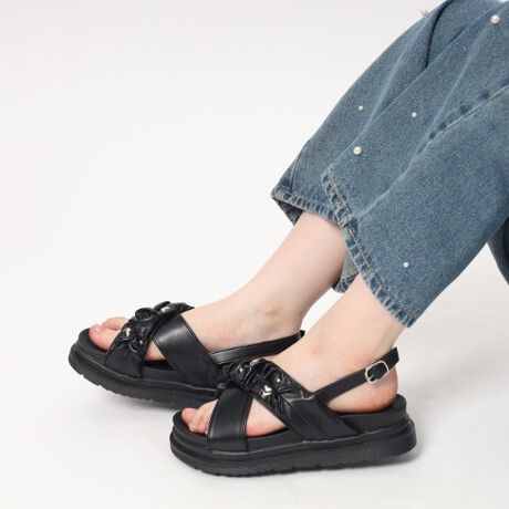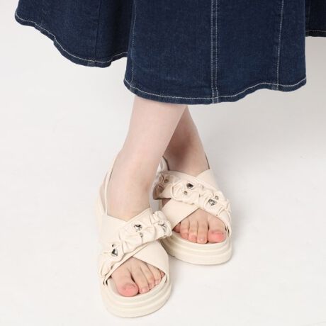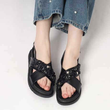 アッパーデザインがシャーリング加工になっていてそこに大人気のハートのスタッズが付いたサンダルです。
