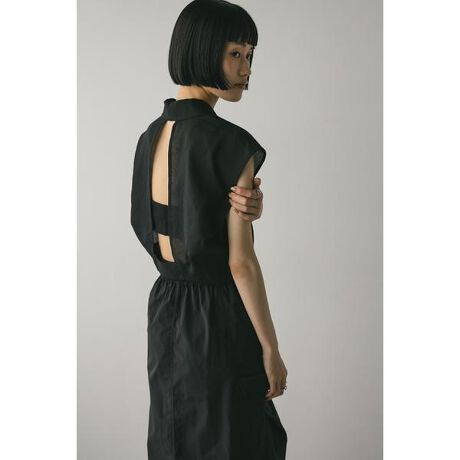 モデル身長165cm(FREEサイズ着用)ソフトでドライタッチな質感のバックオープンショートシャツ。程よい透け感と素材の持つやわらかい質感が女性らしさを際立てる一枚。フロントボタンデティールがモードな印象に導きます。透け感あり、ストレッチなし。【お手入れ方法】マシンウォッシュ可