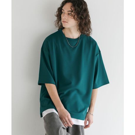 <ASTRONOMY>UVカット梨地裾スリット入りオーバーサイズ5分袖Tシャツ