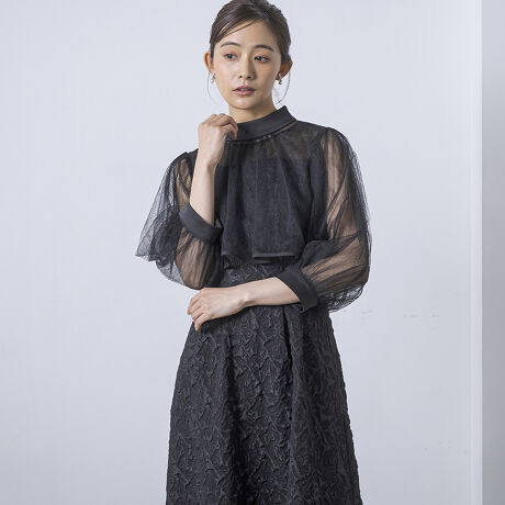 ボレロブラウスは、シアー素材を重ねているので、程よい透け感と甘さが絶妙な大人のドレスです。