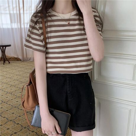 ベーシックなボーダー柄が春らしさを加える半袖カットソーです♪<br>