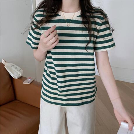 ベーシックなボーダー柄が春らしさを加える半袖カットソーです♪<br>