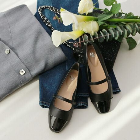 スクエアトゥ×エナメルトゥキャップデザインがクラシカルなFin(フィン)のトゥキャップストラップフラットシューズが登場しました。大注目のスクエアトゥはハンサムなフォルムなのに女性らしいエレガントさも叶えてくれる優れもの。浅すぎず深すぎない絶妙なラインが足元をしっかり包み込んでくれて、華奢なストラップがエレガントな足元を作り上げます。定番のラウンドトゥシューズとは一味違う大人っぽさとトレンド感を存分に楽しめる一足です。