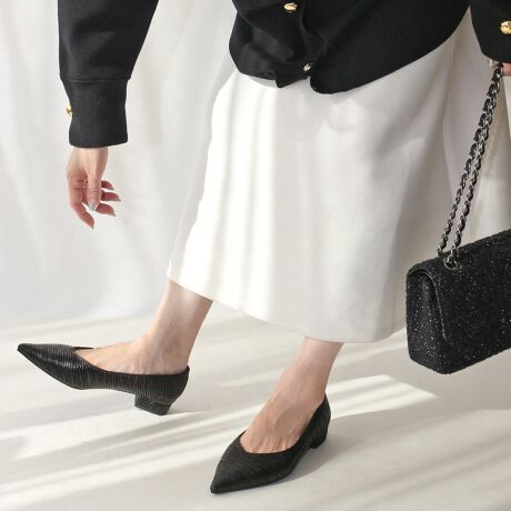 中敷きの下には低反発クッションをセットしているので、足裏にも優しく通勤通学や沢山歩く普段使いにも最適です。高級感のあるメタリックプリーツデザインは軽くて柔らかな履き心地で思わず色違いが欲しくなりそう。低めのヒールでありながら、ラフになり過ぎない品の良さを持ち合わせた優秀デザインなので、デニムやワイドパンツのカジュアルなスタイルのアクセントにはもちろん、スカートコーデやワンピースのフェミニンなスタイルにも相性抜群◎。カラーによって雰囲気が変わるので、お気に入りの一足をチョイスして。