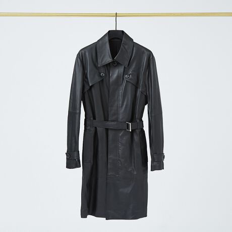 ディレクターズラインから膝丈まで伸びたロング丈が優雅で絵になるレザーシングルトレンチコートが登場です。フロントは比翼仕立てにする事で重厚感を和らげ、スマートで会的な印象に仕上げています。織るだけでモードな雰囲気と共にオーセンティックな大人の色気を演出してくれます。