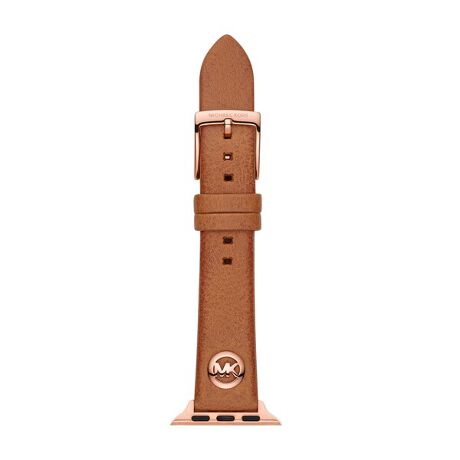 Michael Korsのラゲージレザー製ウォッチバンド。ブランドを象徴するローズゴールドトーンのロゴチャームが、お手元のApple Watchに個性をプラスします。ローズゴールドトーンのバックルをあしらったデザインです。Apple Watch Series 1〜10 または SE専用で、38mm、40mm、41mm、42mmのウォッチにフィットします。Apple WatchはApple, Inc.の商標です。