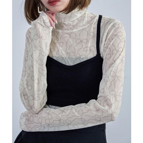 Fashion Letter ファッションレター ハイネックシアーリボントップス