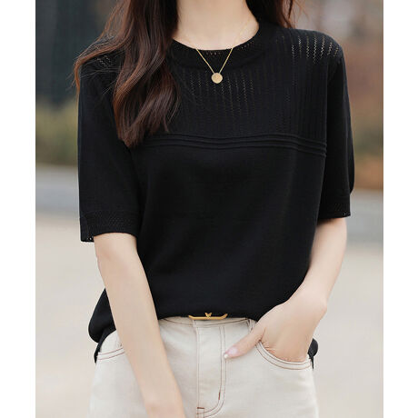 ゆるっと楽にお洒落に映える透かし編み切り替えサマーニット