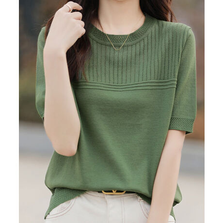 ゆるっと楽にお洒落に映える透かし編み切り替えサマーニット