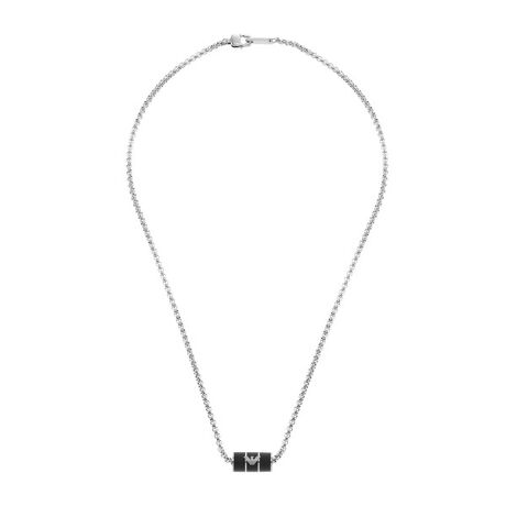 Emporio Armaniのチェーンネックレス。ステンレススチールとマット仕上げのブラックラッカーが特徴です。ロブスタークラスプ付き。