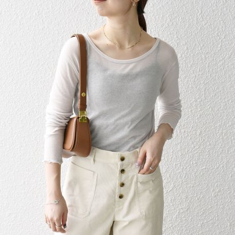 レイヤードに便利なコンパクトなサイズ感のシアーカットソー。
