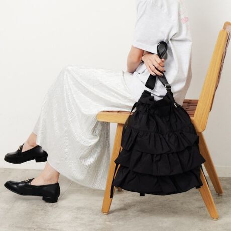 【2WAY/A4サイズ対応】ドロストリボンフリルティアードショルダーバッグ