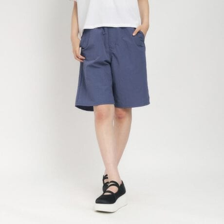 人気のウエストギャザーパンツをナイロン素材でハーフパンツに仕上げました。