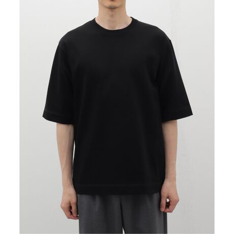 ・希少超長綿のスビンコットンと、発色性の高いオーストラリアコットンをブレンドしたオリジナル糸で編み上げた天竺を使用。アイテムのフォルムを美しく際立たせる、ほどよく肉厚な生地感。肌離れの良いドライなテクスチャーや、絶妙な光沢感が特徴。