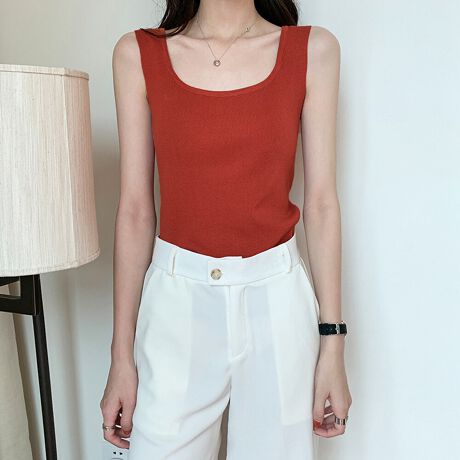 12色を展開し、カラーバリエーション豊富のUネックニットタンクトップ
