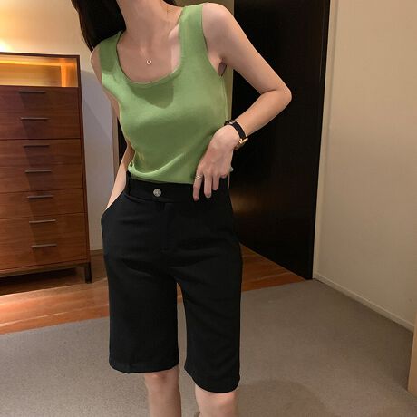 12色を展開し、カラーバリエーション豊富のUネックニットタンクトップ