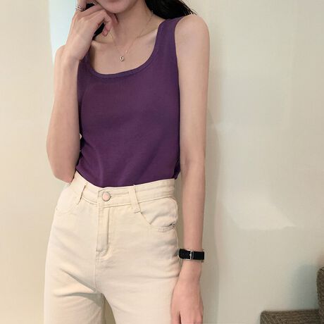 12色を展開し、カラーバリエーション豊富のUネックニットタンクトップ