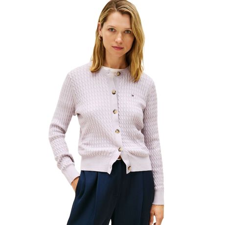装いに柔和な品のよさが加わるミニケーブル編みのクルーネックカーディガン。左胸にはブランドを印象づけるフラッグロゴ刺しゅうが施されています。着回しが効くベーシックなデザインと仕立てで、オンオフ問わずタイムレスに活躍。長いシーズン着用できる程よい厚みのコットンニットを使用しました。